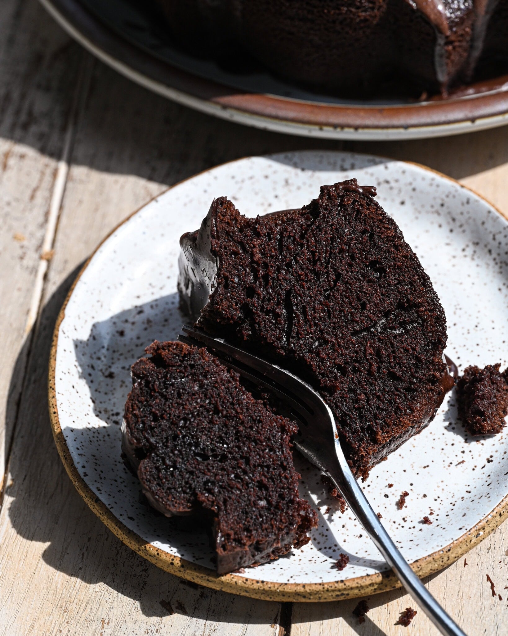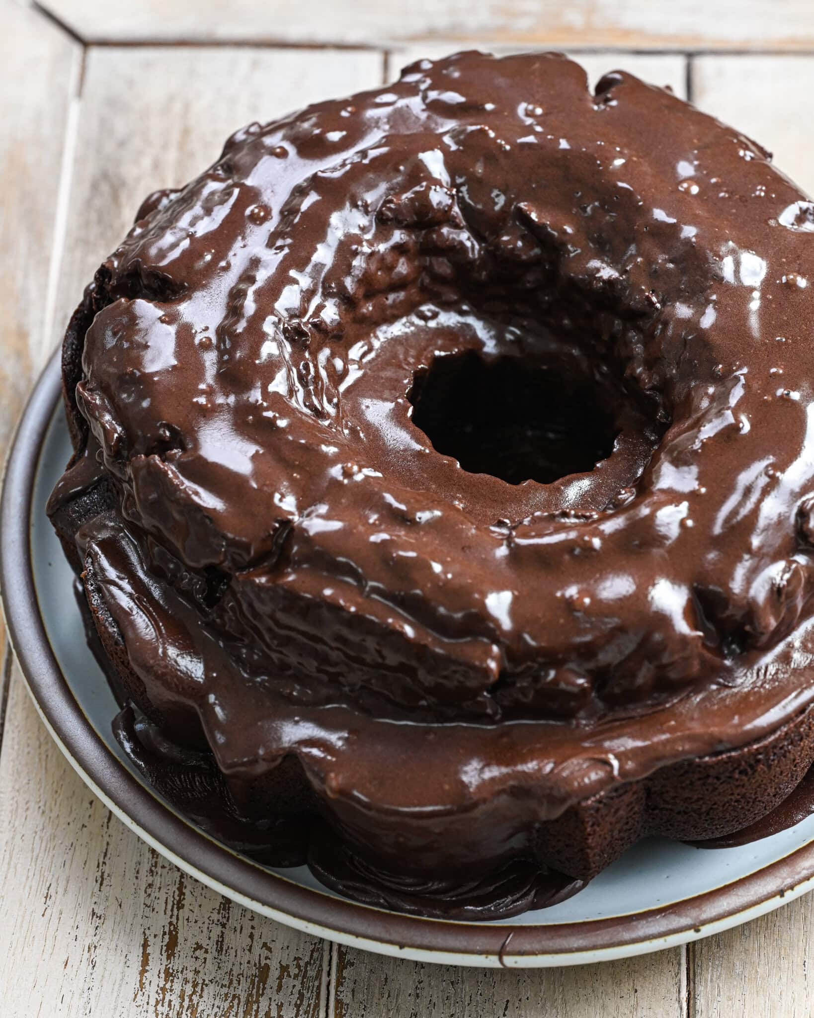 If this sounds like a dream chocolate bundt, I want you to try this recipe. It makes a BIG bundt, you’ll need a 10 cup pan but it’s going to overshoot it a little so it’ll be a tall one too. The glaze isn’t really just a glaze but it’s more of a sauce that gets everywhere, scooping up the bits left on the plate with a bite from your own fork is the best part.
