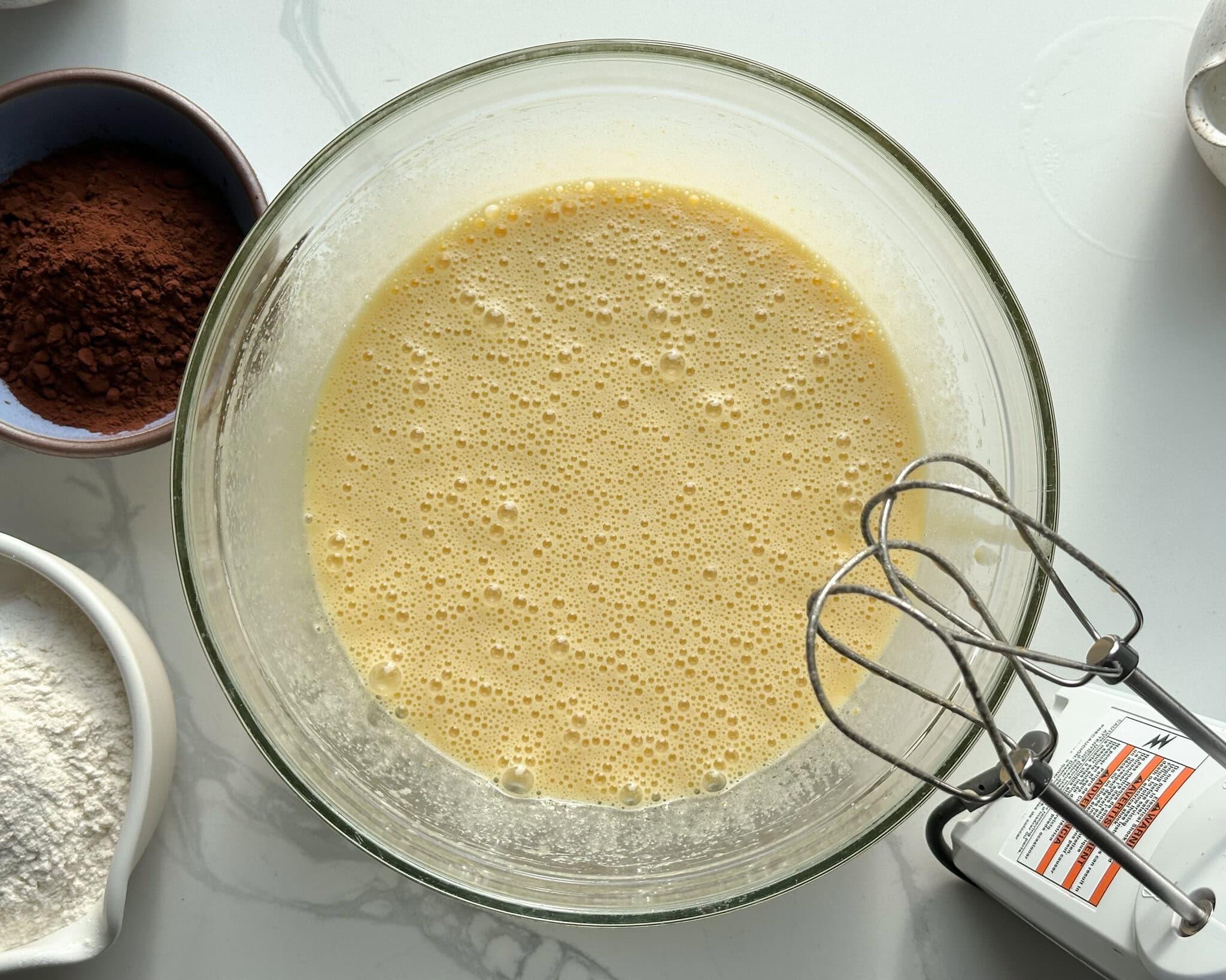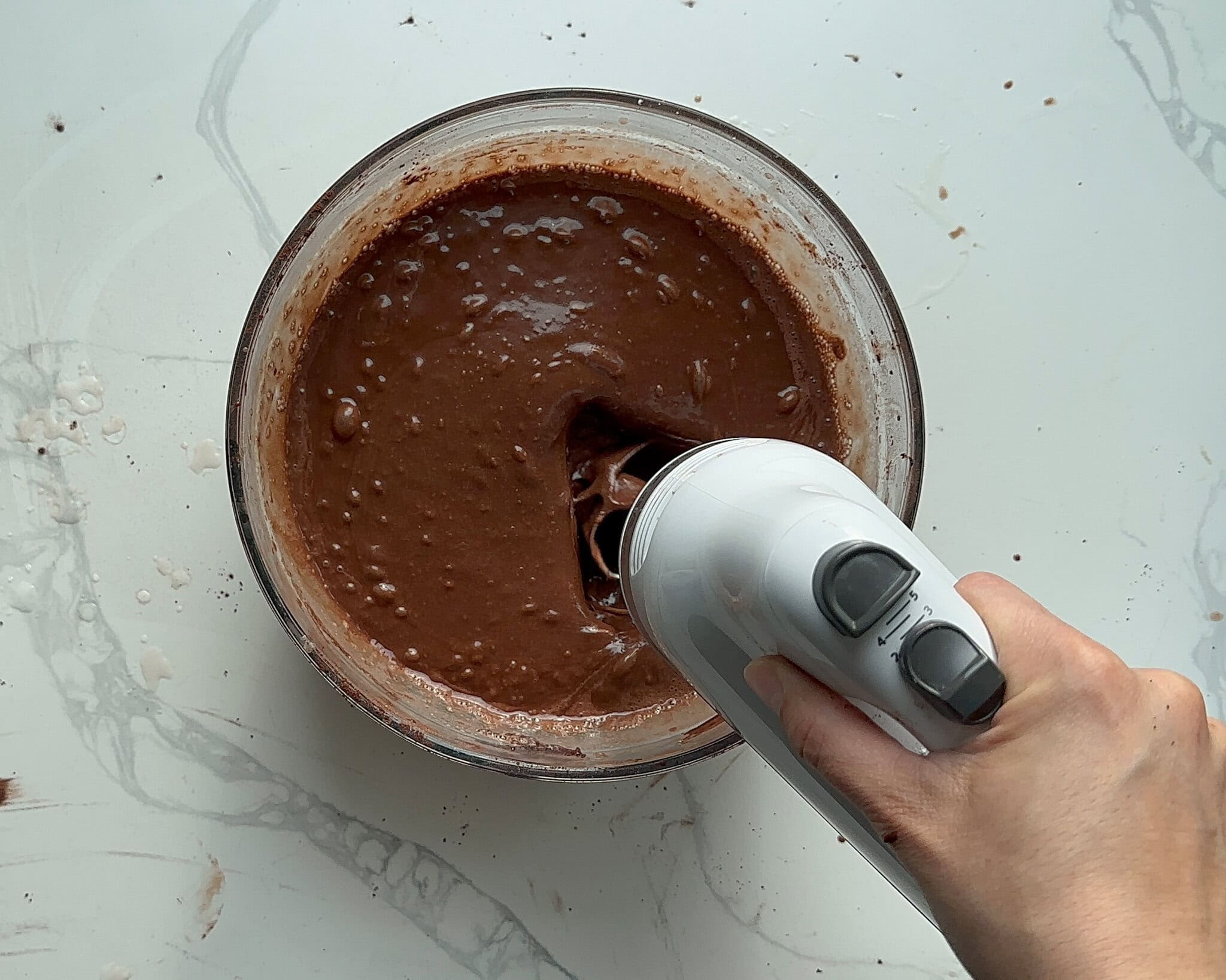 Filtered water: boiling hot. I put my kettle on the fire before starting to mix the ingredients so it’s piping hot when I add it into the batter.
